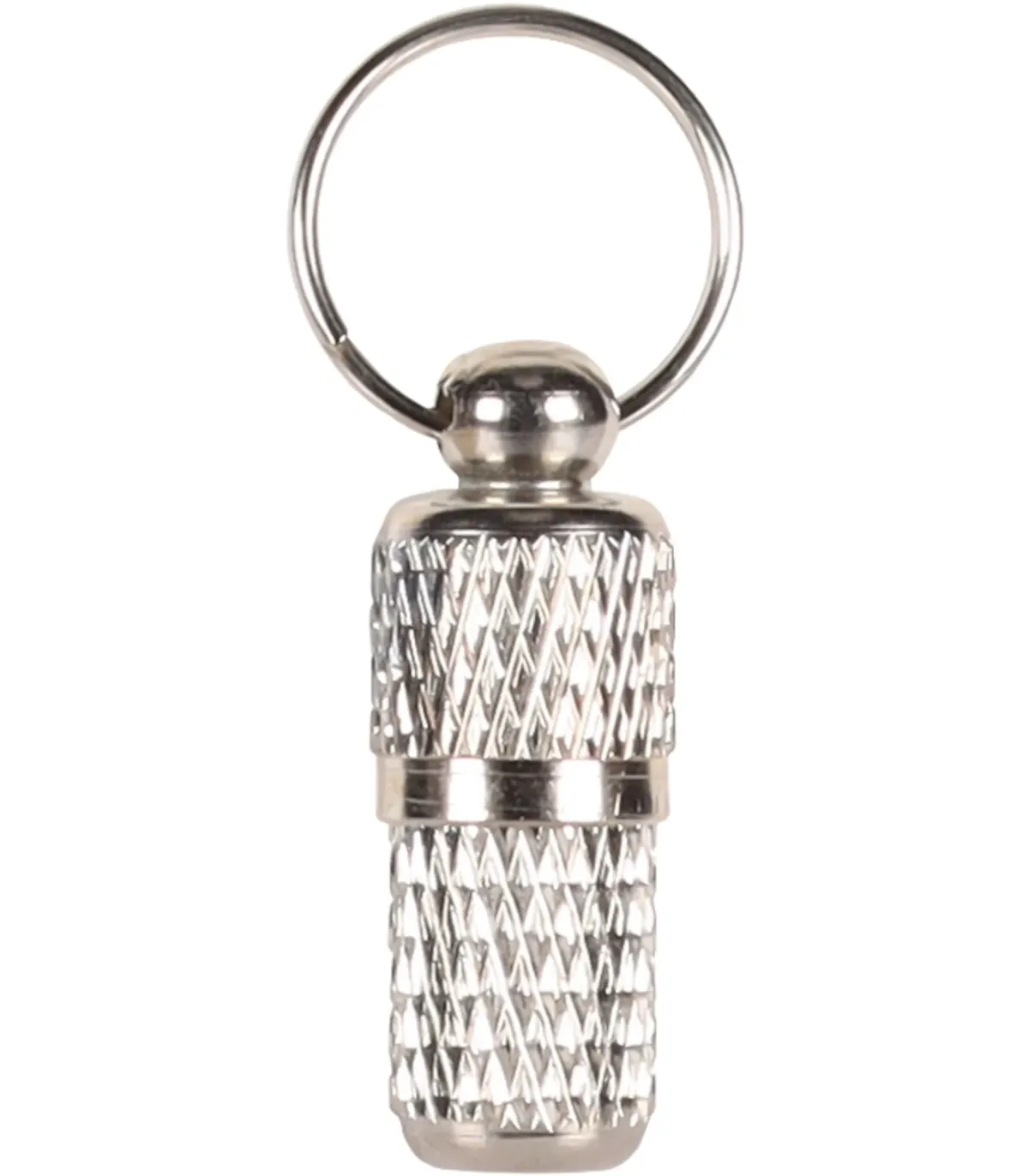 La boîte d'adresse en métal Timo avec un revêtement de nickel brillant peut être attachée au collier de votre animal de compagnie grâce à l'anneau porte-clés.