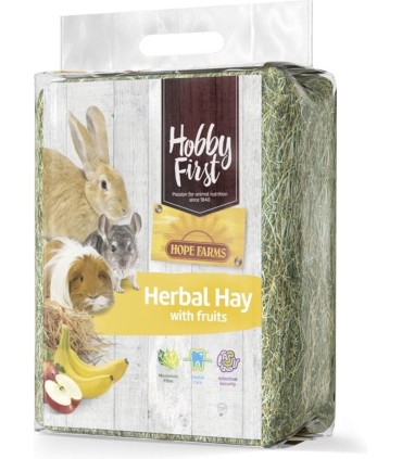 Ce foin aux herbes contient 1 kg de foin avec des fruits délicieux, ce qui rend votre animal encore plus motivé à manger du foin. Herbal Hay est délicieux comme collation ou comme variante du foin ordinaire. Ce foin aux herbes a une teneur élevée en fibres, est bon pour les dents et assure une bonne digestion.