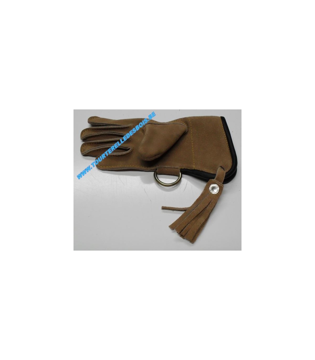Gant de fauconnerie pour enfant en cuir suédé de couleur camel.