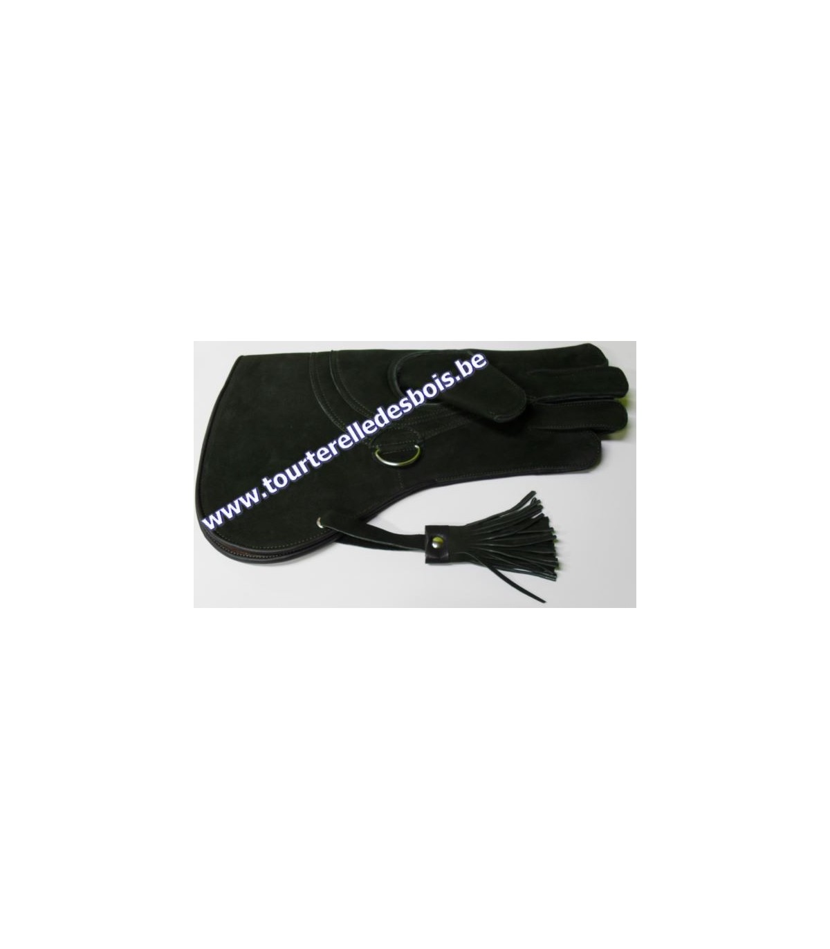 Gant de fauconnerie en cuir nubuck de couleur vert olive agrémenté de notre logo.