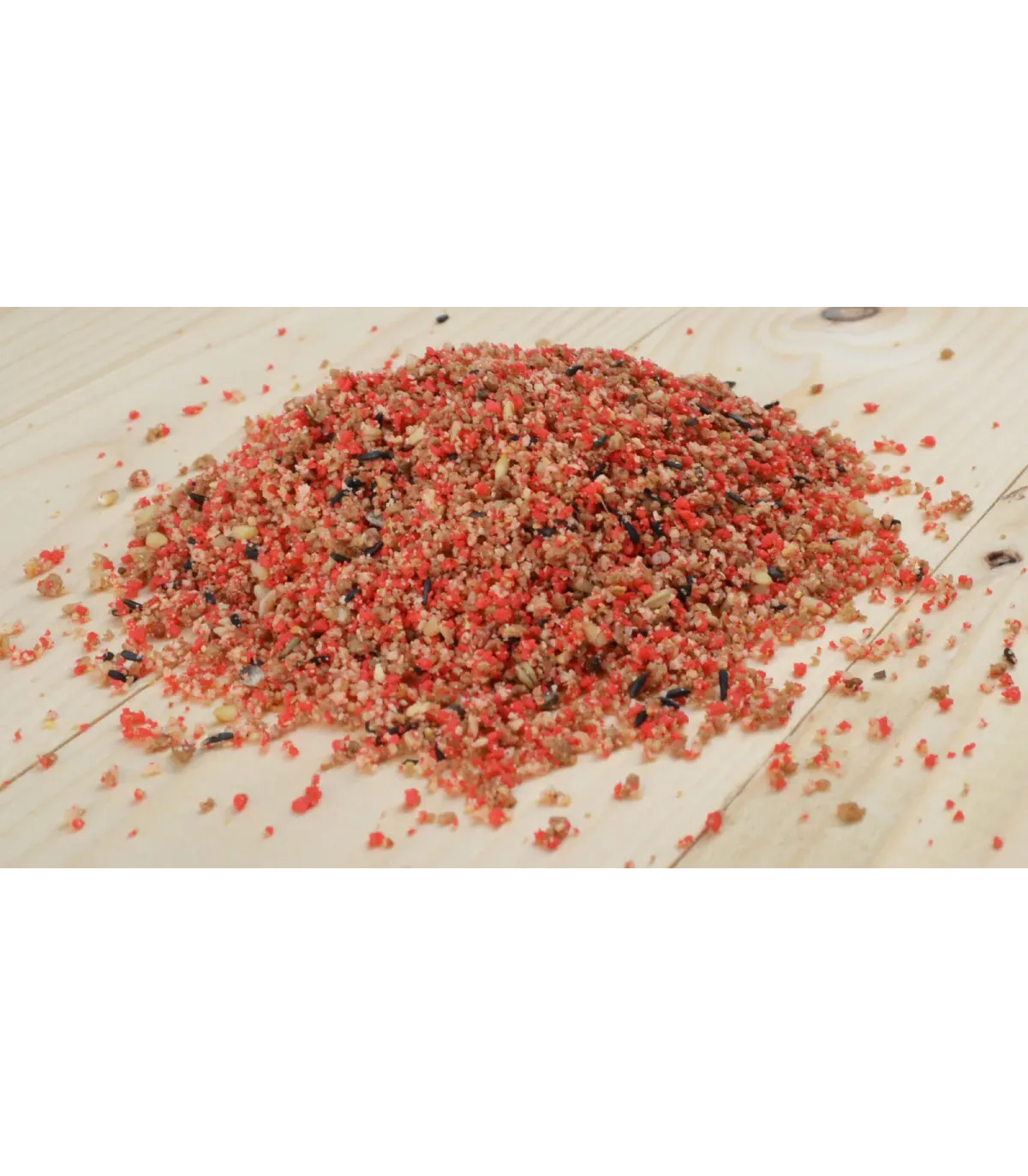 Pâtée rouge grasse aux œufs et colorant pour sublimer le plumage des canaris et oiseaux rouges. Fine, riche et très appétente.