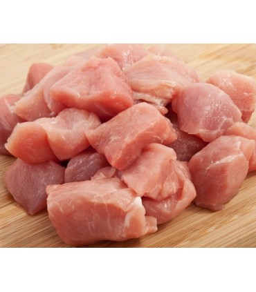 Viande de porc coupée en cubes.