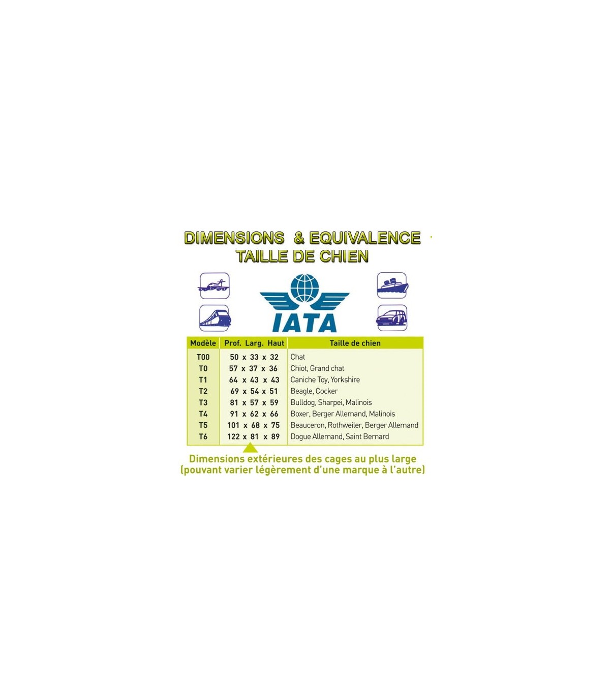 Le trousseau d’un chien doit comporter de nombreux éléments dont l’indispensable cage de transport. Au contraire de la laisse –réservée aux sorties quotidiennes en milieu urbain–, la cage de transport vous permettra d’effectuer des sorties plus longues et de voyager sereinement avec votre compagnon. Animal de 35 à 60 kg.